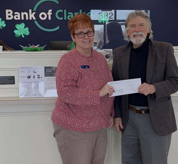 Lisa Shifflett, Bank of Clarke-Stephens City, presents Barry with a check for $6,680! Half the money was raised at the branch with a bake sale, silent auction and collection jars in the lobby, then matched by Bank of Clarke corporate!