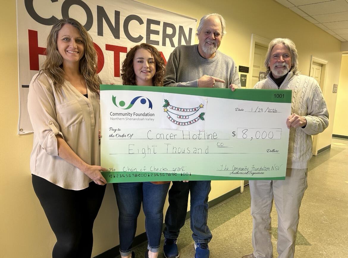 - Concern Hotline, Inc. has been providing 24-hour suicide prevention and compassionate listening to the Northern Shenandoah Valley since 1968 with over 3,000 calls in 2024. The grant will help Concern Hotline continue to comfort, calm and assist those in need with empathetic support via trained volunteers.