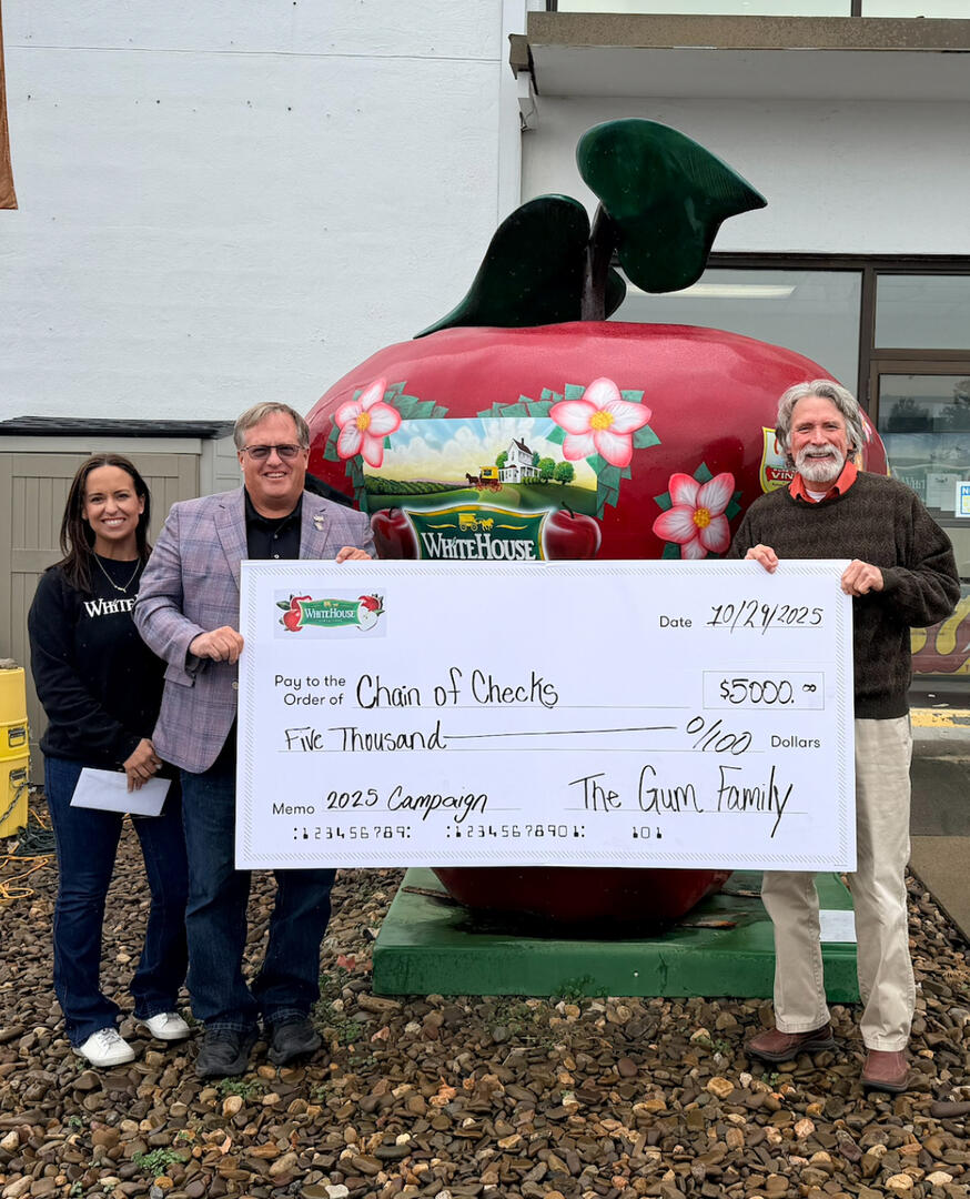 - Chain of Checks corporate sponsors, Bill & Lois Reynolds, White House Foods (the Gum family) and Bank of Clarke (Stephens City Branch)